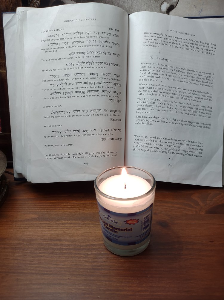 My dear cousin, in the tradition of my religion, I lit a candle for your son, and I will say the above-mentioned prayer with members of my congregation on behalf of your son and others who have fallen victim to senseless violence. Remember also, that you can be uplifted by acknowledging the strength, power, greatness, and love of your Creator. You may never make sense out of the nonsense that took your son, but in due time, you can begin a new day with joy after the dark night of mourning.