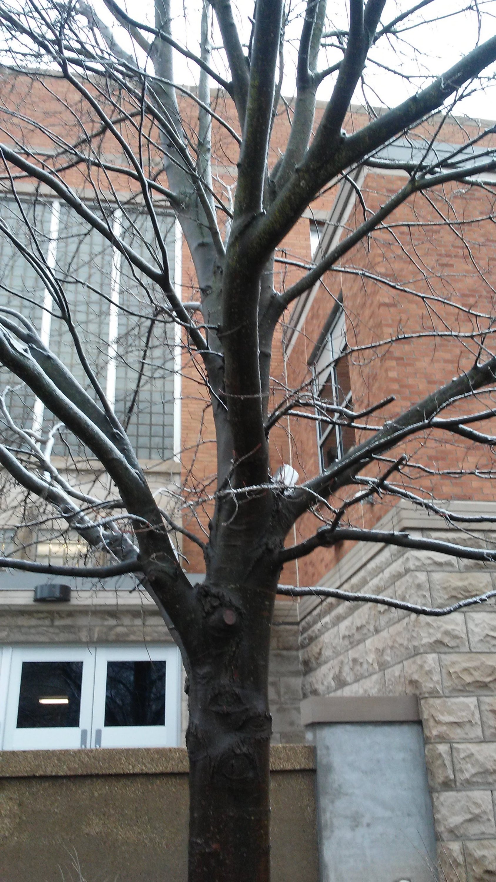 The building behind it is a school. Two of my children attended that school. Three years ago, I went on an early morning walk to look around and see what I could see. On the way back, I stopped at the tree, and that is when I saw them: eyes! There were about six of them. I must admit that they scared me just a little bit, but now, they serve to remind me of the need to be aware and watchful.