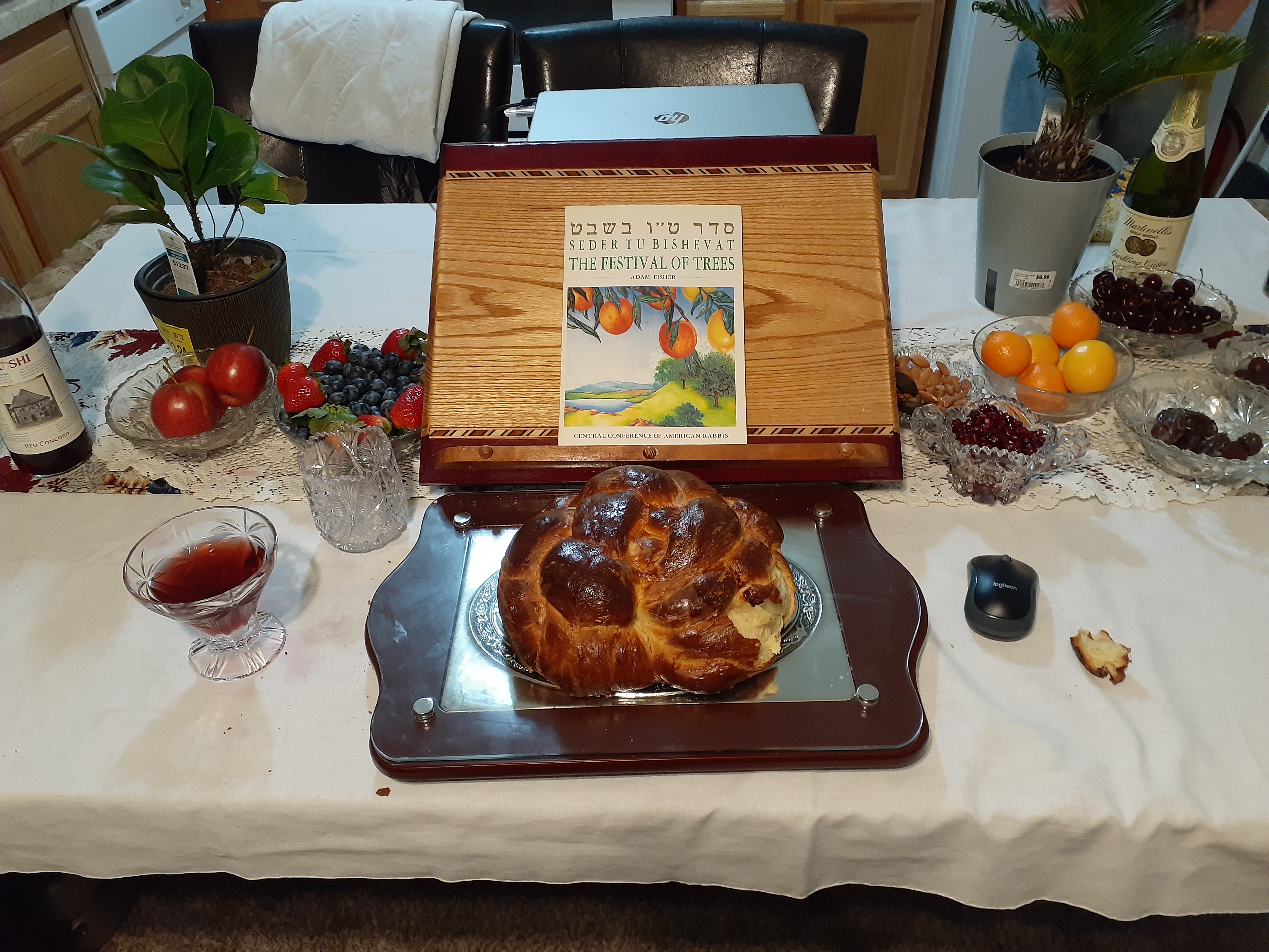 Today was glorious! It was cloudy all day, but there was a lot of sunshine inside my home. Mike and I hosted a Tu Bishevat Seder on Zoom.